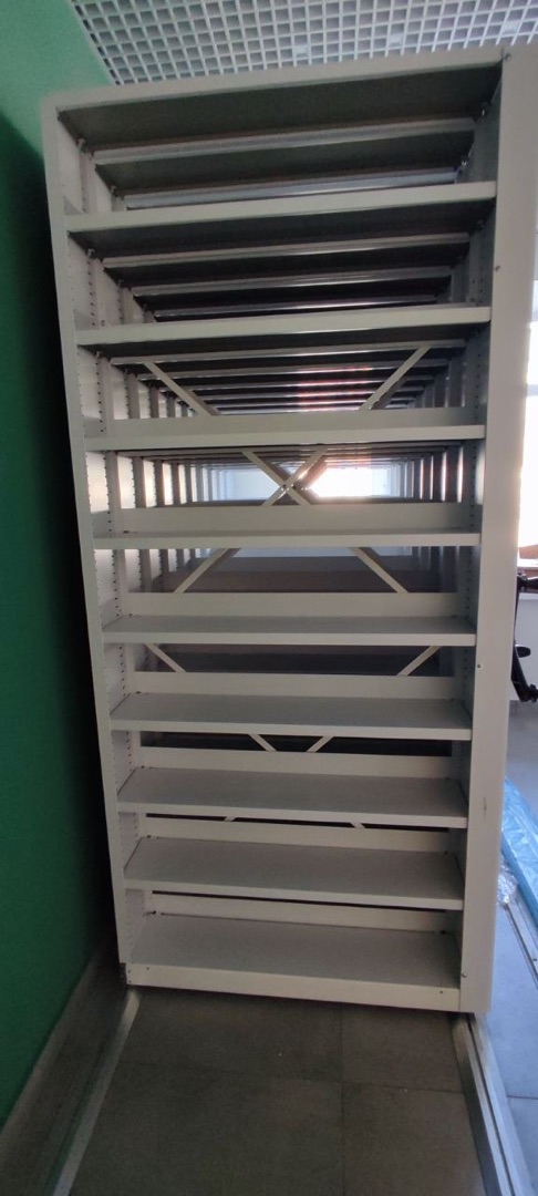 Из-за значительной высоты стеллажей – 2040 мм и при малой ширине секций были установлены специальные антиопрокидыватели, обеспечивающие устойчивость и безопасность персонала при выдвижении секций.