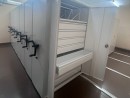 Разработали и реализовали индивидуальный проект расстановки стеллажей для каждого помещения. Использовали передвижные стеллажи серии «Л», преимущественно полочного типа. В одном из залов добавили выдвижные ящики под конкретные размеры мелких экспонатов. Крайние стеллажи оснастили дверями и замками для дополнительной защиты.