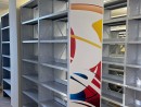 Металлические стеллажи с лицевыми панелями под дерево, брендирование под предприятия (ПВХ)